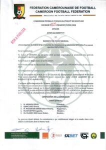 DECISION DE LA COMMISSION FEDERALE D’HOMOLOGATION SUR L’AFFAIRE AVION ACADEMY FC vs BAMBOUTOS FC DE MBOUDA