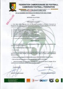 DECISION N°005_AFF BAYEBANE SILAS EDDY C. YONG SPORTS ACADEMY