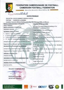 PROGRAMME DU MATCH AMICAL CAMEROUN vs NIGERIA DU 28 FÉVRIER 2026 À YAOUNDÉ