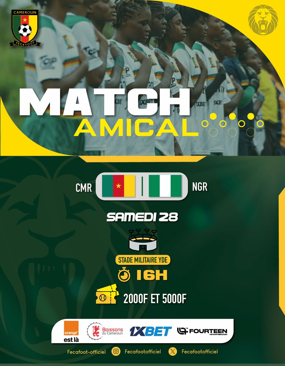 PROGRAMME DU MATCH AMICAL CAMEROUN vs NIGERIA DU 28 FÉVRIER 2026 À YAOUNDÉ